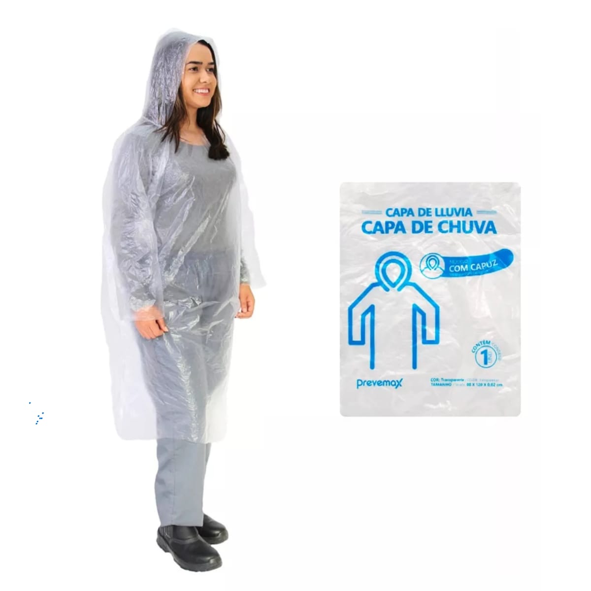 DESCRIÇÃO:Capa de chuva em polietileno com 1,20 metros, sem elástico com capuz descartável transparente. Uso indicado para agricultura, indústria alimentícia, frigorifico, indústria química, prestador de serviços, construção civil, laticínios, evento, festa, passeios.ESPECIFICAÇÕES:Referência: Capa de chuva com capuz polietileno 1,20mComposição: PolietilenoTamanho único: 0,80x 120 x 0,02cmCor: TransparenteNormas Técnicas: Fabricado segundo as boas práticas de fabricação, a qual atende os requisitos definidos na resolução RDC 91/2001 ANVISA.CONSERVAÇÃO E DURABILIDADE:Manter em local limpo, seco, fresco, protegido da luz, umidade e calor excessivo. (Por tratar-se de composto a base de polietileno, seu contato com temperaturas elevadas poderá modificar suas caraterísticas ou resistência mecânicas).